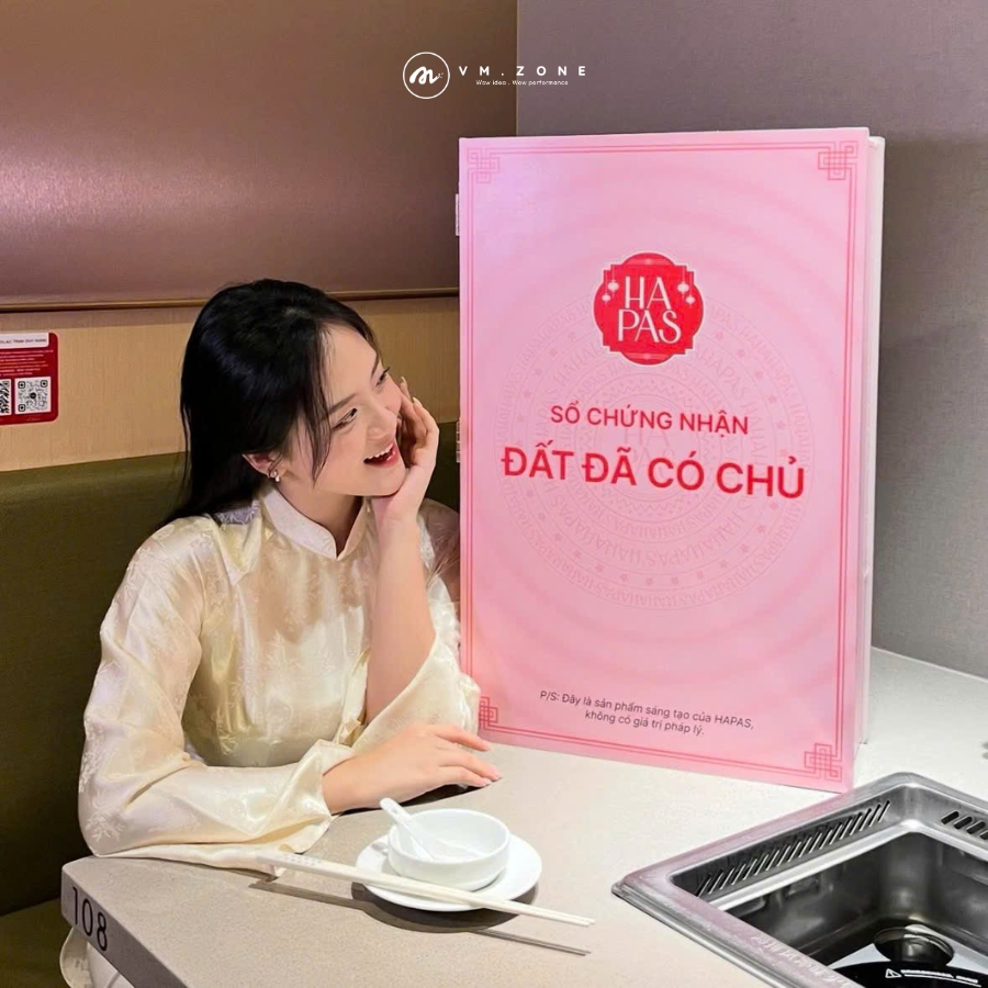 Sự kết hợp giữa sắc hồng hiện đại của "sổ đỏ" HAPAS và không gian rực rỡ của ngày Tết tạo nên những góc check-in "vui xỉu". Khách hàng không chỉ đến để thưởng thức ẩm thực mà còn được tham gia vào một hành trình trải nghiệm thú vị: