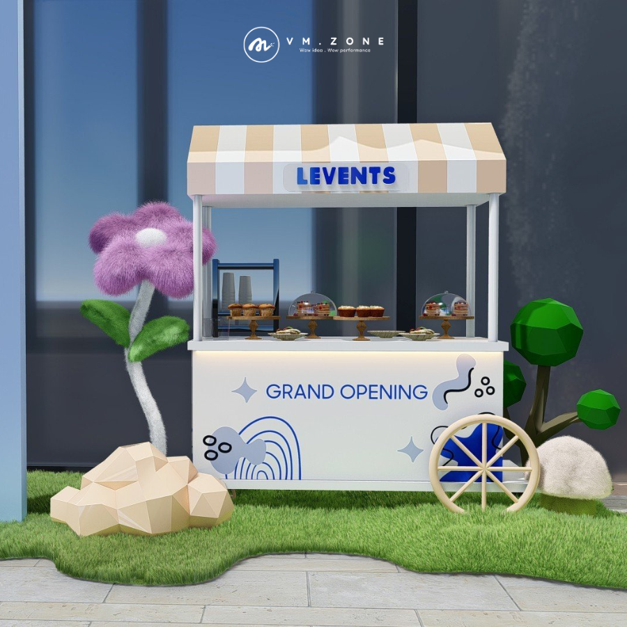 Để giải quyết triệt để thách thức về tính độc đáo và tương tác, VM Zone đã lựa chọn một giải pháp táo bạo: Concept "Levents' Dreamy Garden" – Khu Vườn Low-Poly Mộng Mơ. Low-Poly (Đa giác thấp) là một phong cách thiết kế 3D tối giản, thường thấy trong các trò chơi điện tử indie, mang lại cảm giác thế giới hoạt hình/Fantasy rất gần gũi và được yêu thích bởi thế hệ Gen Z. Việc đưa phong cách Low-Poly từ màn hình game ra không gian vật lý thực tế đã biến toàn bộ khu vực khai trương thành một "Ảo Diệu Hiện Thực" (Dream-like Reality), một môi trường độc nhất vô nhị, hoàn toàn phù hợp với tinh thần của một "sân chơi tương tác" thực thụ, mời gọi khách hàng bước vào một cuộc phiêu lưu ngọt ngào.