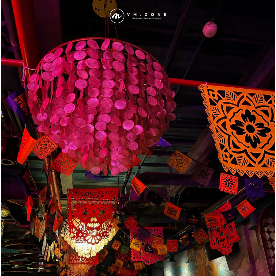 Ánh sáng được sử dụng một cách tinh tế để làm nổi bật các chi tiết trang trí, tạo nên không gian lung linh huyền ảo. Âm nhạc Mexico sôi động, đầy nhịp điệu đã hòa quyện cùng không khí lễ hội, kích thích cảm xúc và khiến khách tham dự không thể ngừng lắc lư theo điệu nhạc.