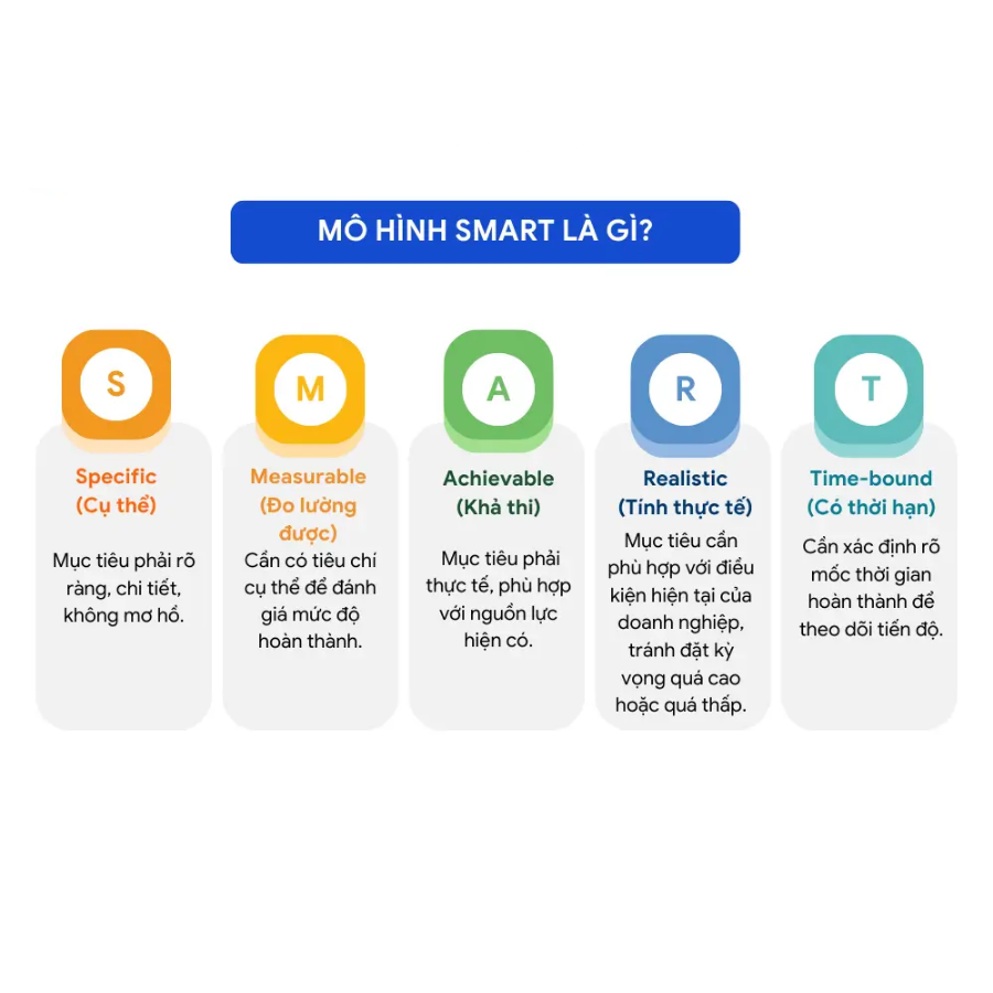 - Mục tiêu (SMART): Đảm bảo mục tiêu phải Cụ thể (Specific), Đo lường được (Measurable), Khả thi (Achievable), Liên quan (Relevant), và có Thời hạn (Time-bound).