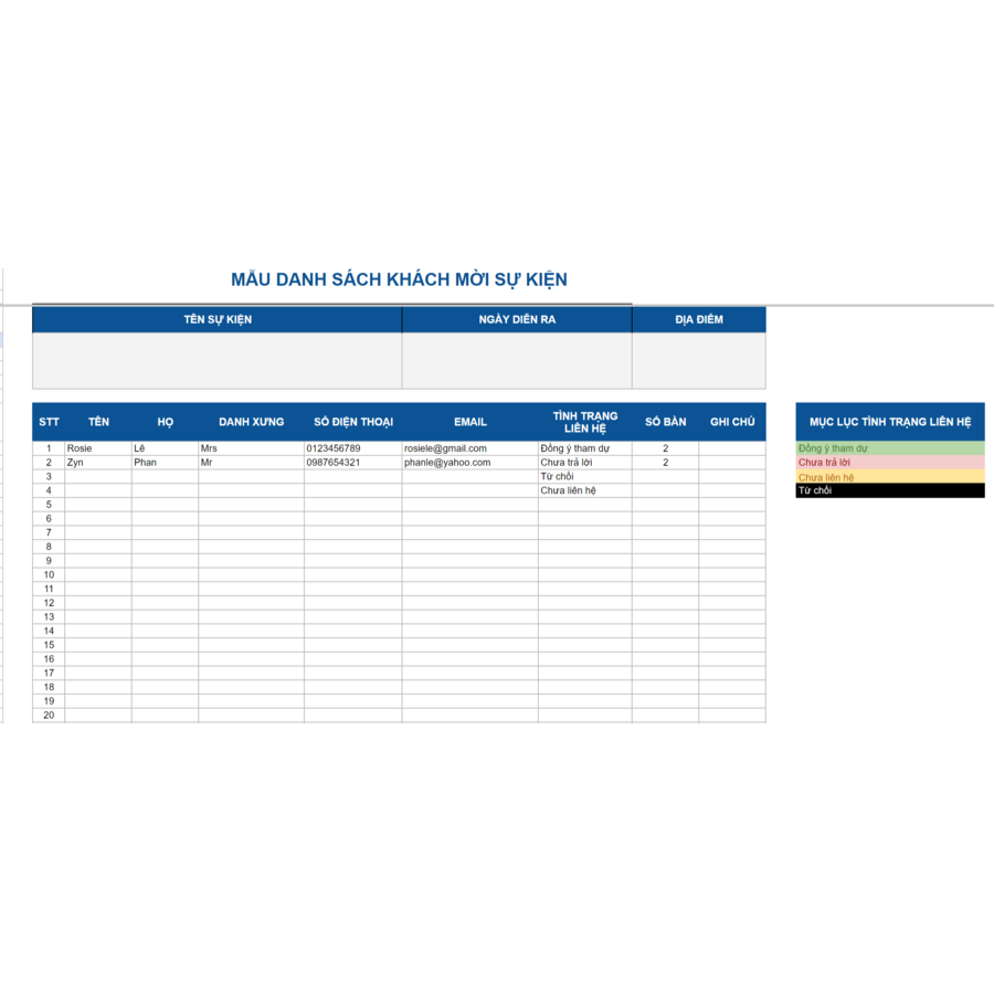 - Dự phòng (Plan B): Nếu là sự kiện ngoài trời, luôn chuẩn bị phương án B trong trường hợp thời tiết xấu.