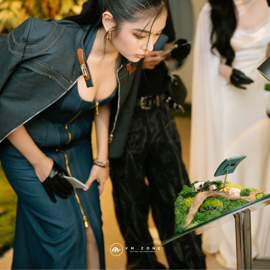Sự đối lập đắt giá: Tại đây, những chất liệu thô mộc như đá tự nhiên, gỗ lũa và rêu phong được sắp đặt tỉ mỉ để làm nền cho sự lấp lánh của kim cương và đá quý. Chính cái vẻ "hoang sơ" đó lại càng tôn vinh sự tinh xảo trong từng giác cắt của trang sức MWJ. Khách mời sẽ có cảm giác như vừa tìm thấy một kho báu cổ xưa bị ẩn giấu giữa rừng già – một trải nghiệm đầy kích thích nhưng cũng rất đỗi bình yên.